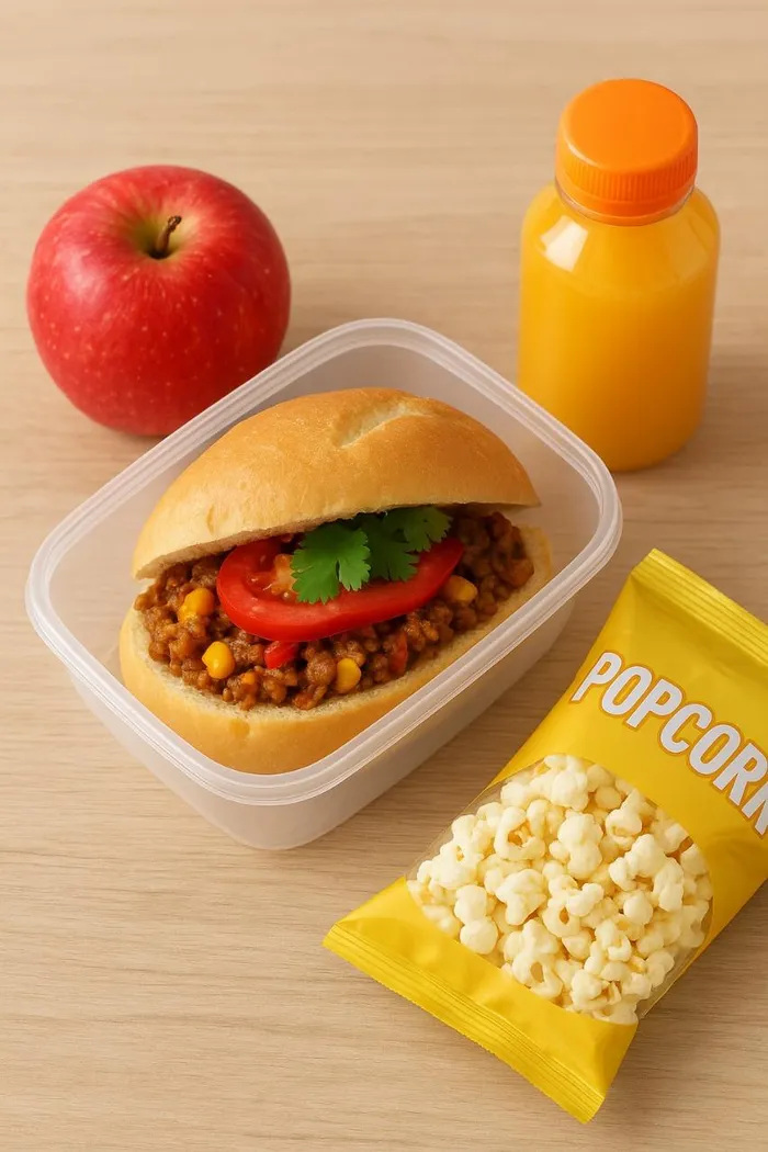 Heat the leftover mince or slice the boerewors if cold. Place inside the roll or between the bread slices. Add cheese, tomato and sprinkle with sweetcorn or peppers. Garnish with fresh coriander or paprika for a pop of flavour and colour. Pack the roll or sandwich into the lunchbox. Include a drink (juice or water), a piece of fruit, and a small snack, like popcorn.