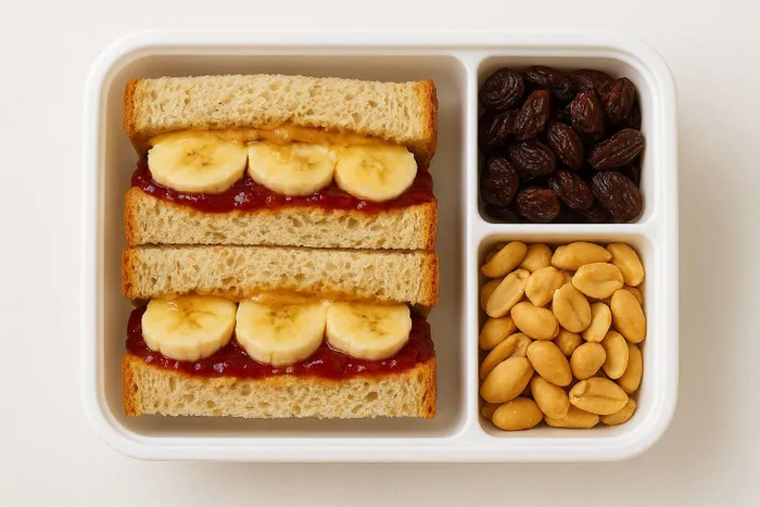 Spread peanut butter evenly over one slice of bread. Spread jam over the other slice. Add the banana slices or sprinkle chia seeds for a tasty, nutritious twist. Press the slices together and cut into halves or fun shapes. Pack the sandwich into a lunchbox with a small piece of fruit or a few cheese cubes.