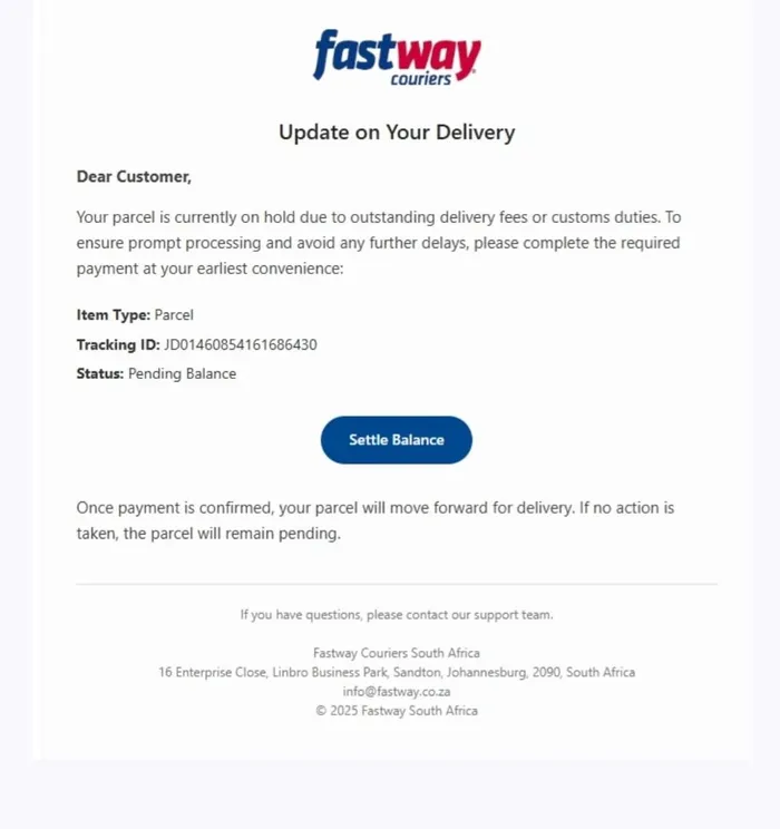There was a Fastway logo, a tracking ID, lots of other well-known logos, links to articles – the works!