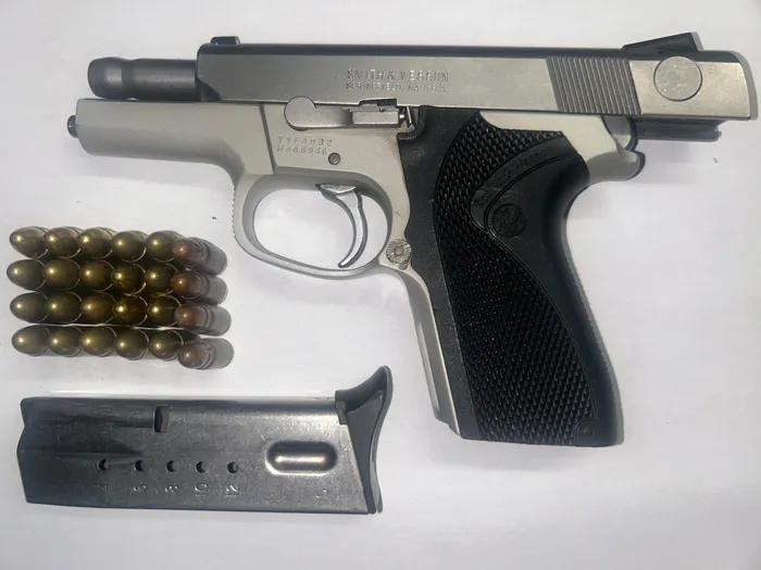 Upon arrival at a residence in Remhoogte Street, Voorbrug, they found a black 9mm pistol and 24 rounds of ammunition hidden in a shoebox.
