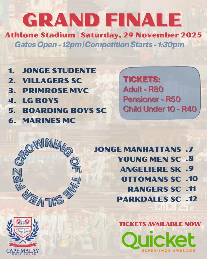 The Cape Malay Choir Board (CMCB) season will reach its climax next week with its Grand Finale to be held at Athlone Stadium on Saturday, 29 November 2025.