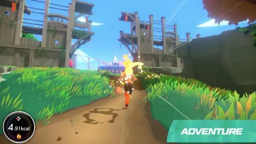 The player moves along a fixed path by running in place, jumps over obstacles by squeezing and releasing the Ring-Con, and can fire projectiles at potential foes by pushing out the Ring-Con in the target direction.