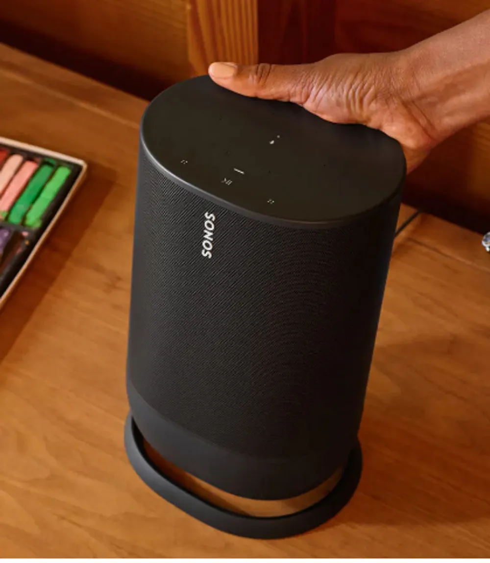 Sonos’ sound is impressively deep and rich and it connects through wi-fi to Alexa, Siri and other assistants, so you can control it through your phone, or directly from a mic on the speaker.