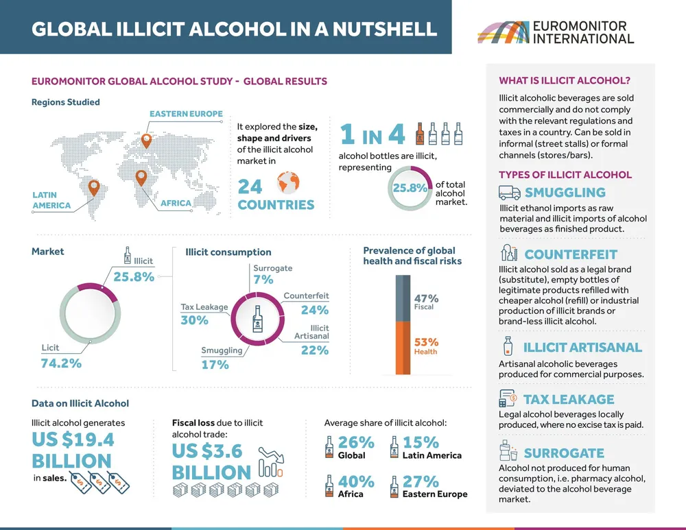 Illicit alcohol, a global problem. Graphic from Euromonitor International