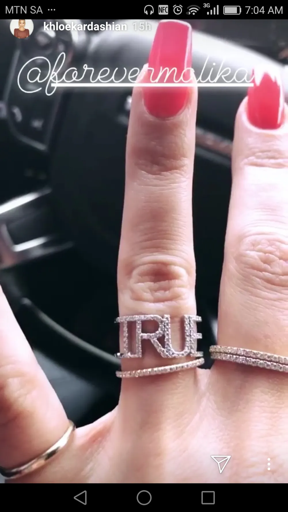 The ' Keeping Up With The Kardashians' star showed off the diamond sparkler on her Instagram story. It appears that the ring was gifted to her by her pal Malika Haqq so she can always have True, now three months, with her wherever she goes.