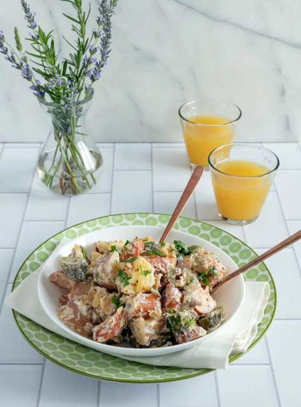 Fry until fragrant and the sausages are heated through. Add the potatoes back to the pan and toss gently to coat. Add the sweet and sour gherkins and parsley.