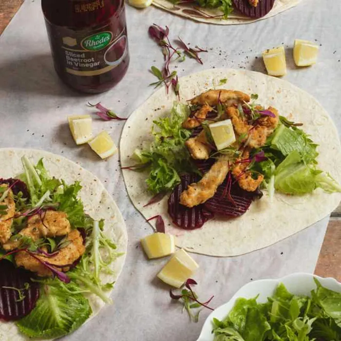Top each wrap with a serving of sliced beetroot in vinegar.