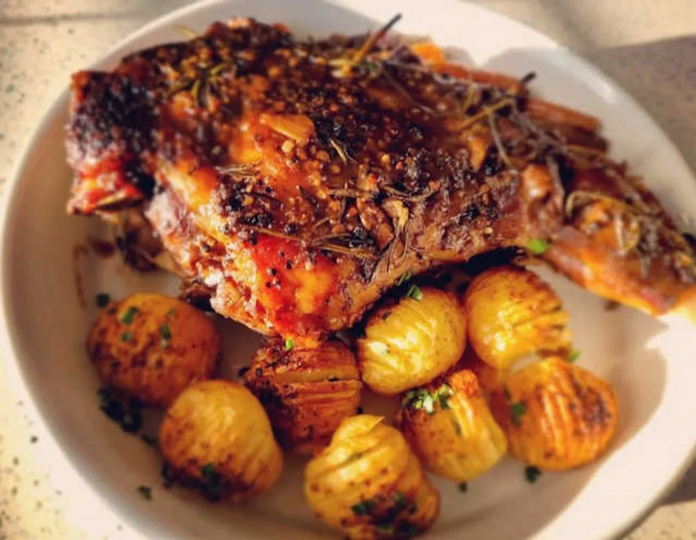 Baste again and bake for a further 15 minutes until browned and glossy.