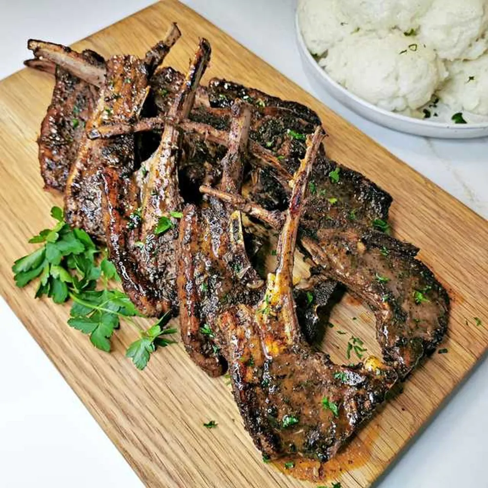 In a flat tray lay the chops flat on a single layer and drizzle over each with the spice and herb marinade.