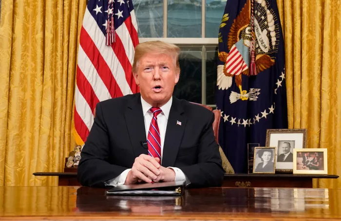 President Donald Trump speaks from the Oval Office of the White House as he gives a prime-time address about border security in Washington. Picture: Carlos Barria/Pool Photo via AP President Donald Trump speaks from the Oval Office of the White House as he gives a prime-time address about border security in Washington. Picture: Carlos Barria/Pool Photo via AP