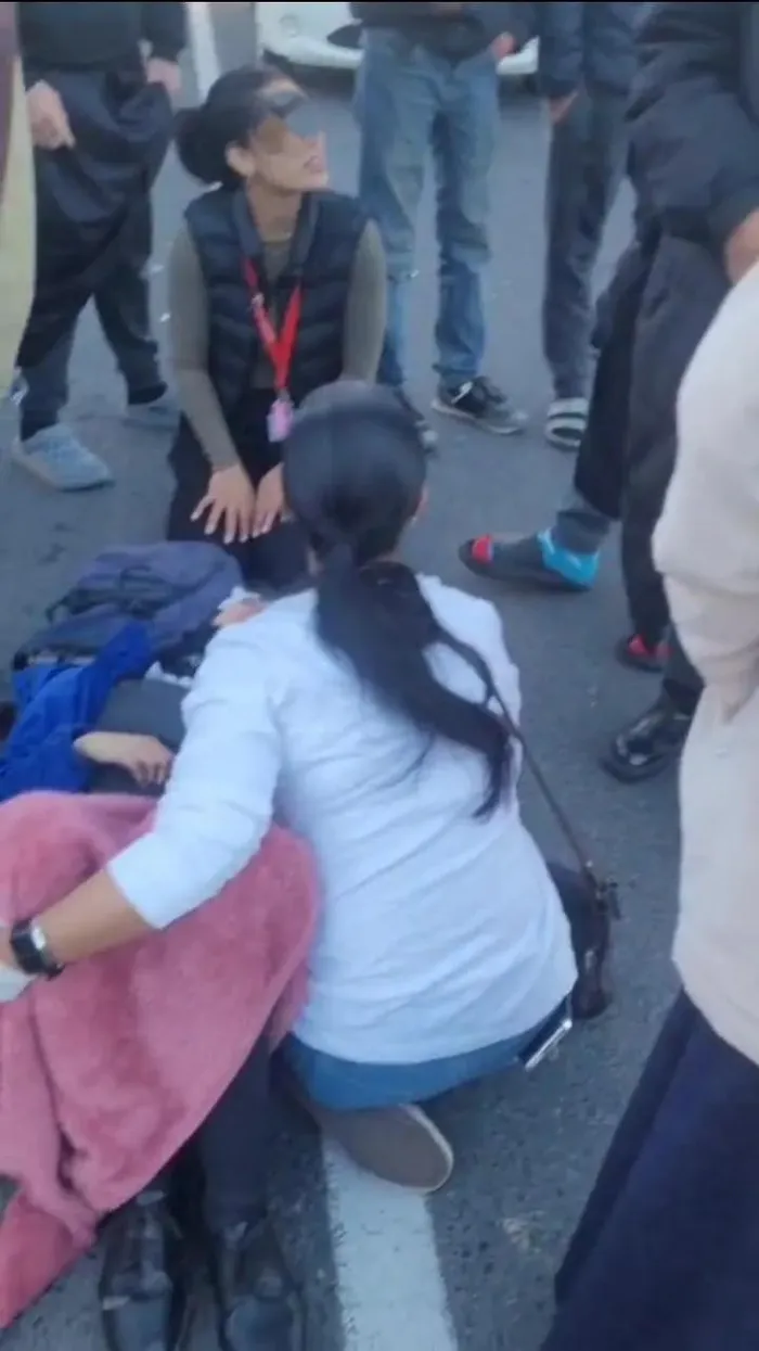 Footage from the scene was posted on crime groups showing the girls lying apart in Spine Road dressed in their school uniform as they are being attended to.