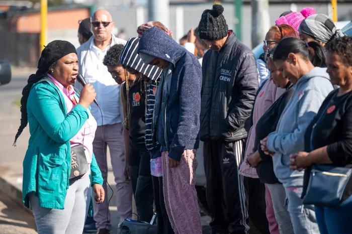 ANGER: Residents gather outside the Bishop Lavis Magistrate’s Court for the appearance of Mervyn White, accused of stabbing 5-year-old Xavier Mitchell to death.