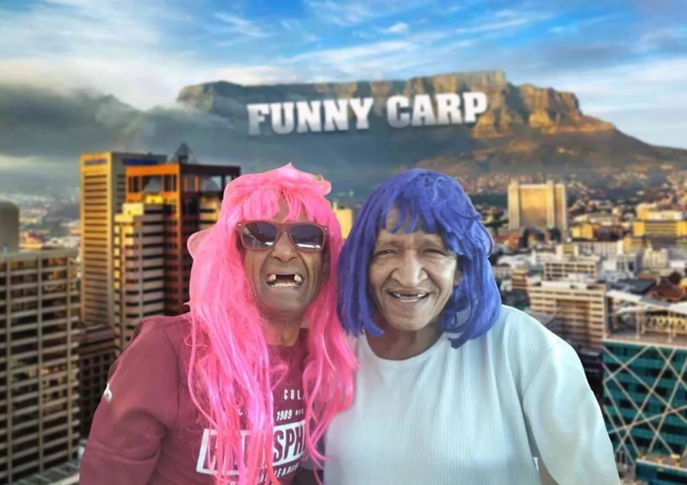 LOCAL LEGEND: Funny Carp’s Adiel Davids aka Sly Helluva Guy and Aubrey Arries aka Kleintjie Prym. Picture supplied