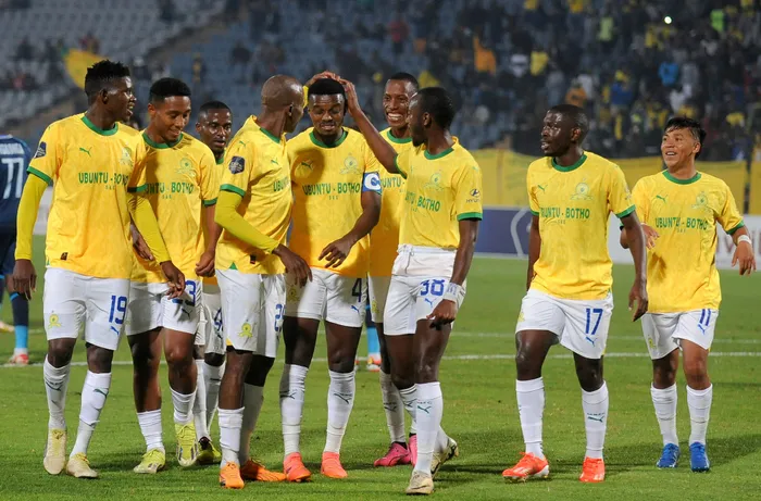 Honey pot: Sundowns main man TebohoMokoena, centre, is coveted by Brentford. Picture: Phakamisa Lensman/BackpagePix