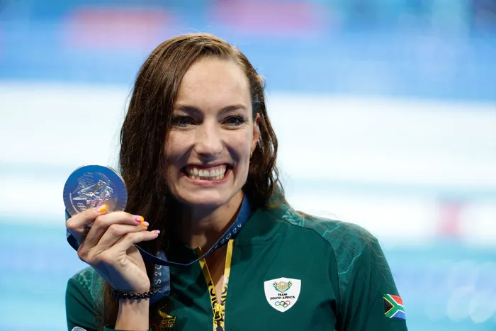 With a gold medal in the 100m event, she moved level with Chad le Clos for most medals won as a South African Olympian, but trumps the veteran men’s swimmer in terms of weight of medals.