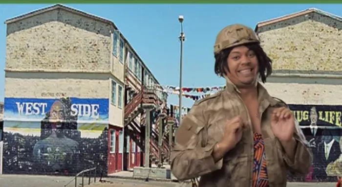 Dressed in military fatigues, Devon starts out the video: “The army was in Afghanistan and Kazakhstan, but can they staan sterk bene here on the Cape Flats?