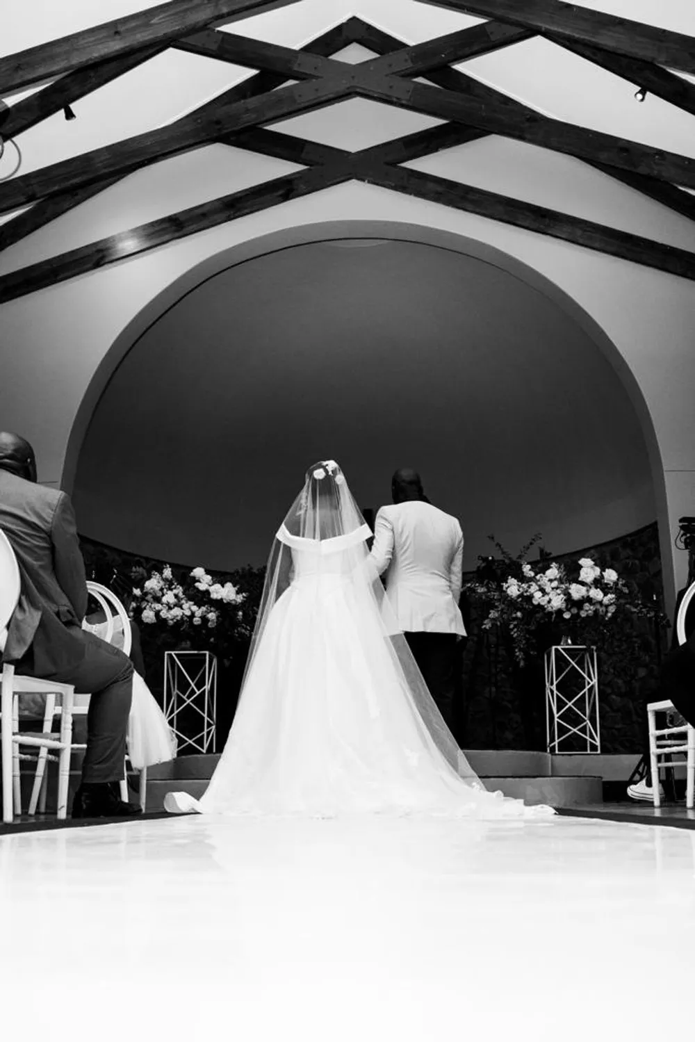 Soldaat realised her vision of looking and feeling like a princess in a custom-made Bride & Co dress, and Mkansi was dashing in a black suit paired with a tie by Relevance for Men, pledged by DJ Black Coffee.