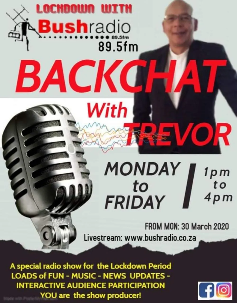 “When I was asked by (station manager) Adrian Louw to develop, produce and present a show on Bush Radio specifically for the lockdown period, I wholeheartedly accepted after deliberations with my family,” he says.