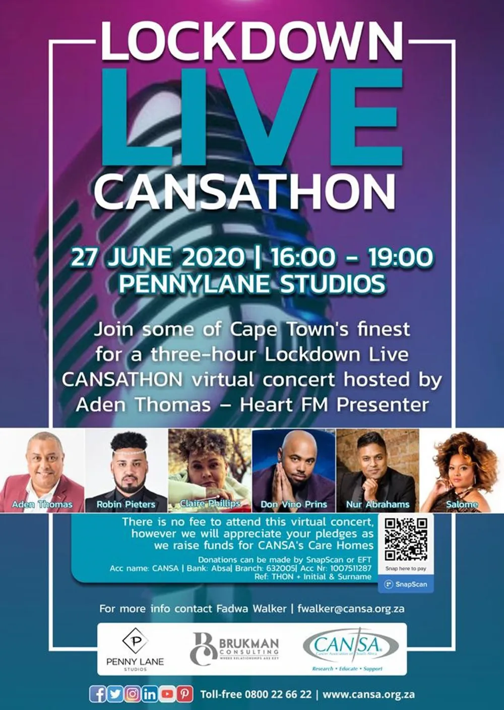 Cape Town’s musical gems got together on Sunday to host the Lockdown Live Cansathon where they raised and estimated R100 000 for CANSA’s Care Homes.
