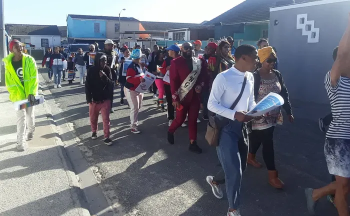 The walk started from Olifantshoek Community Centre in Tafelsig and ended with testing and speeches at the open field on Pyrenees Street.