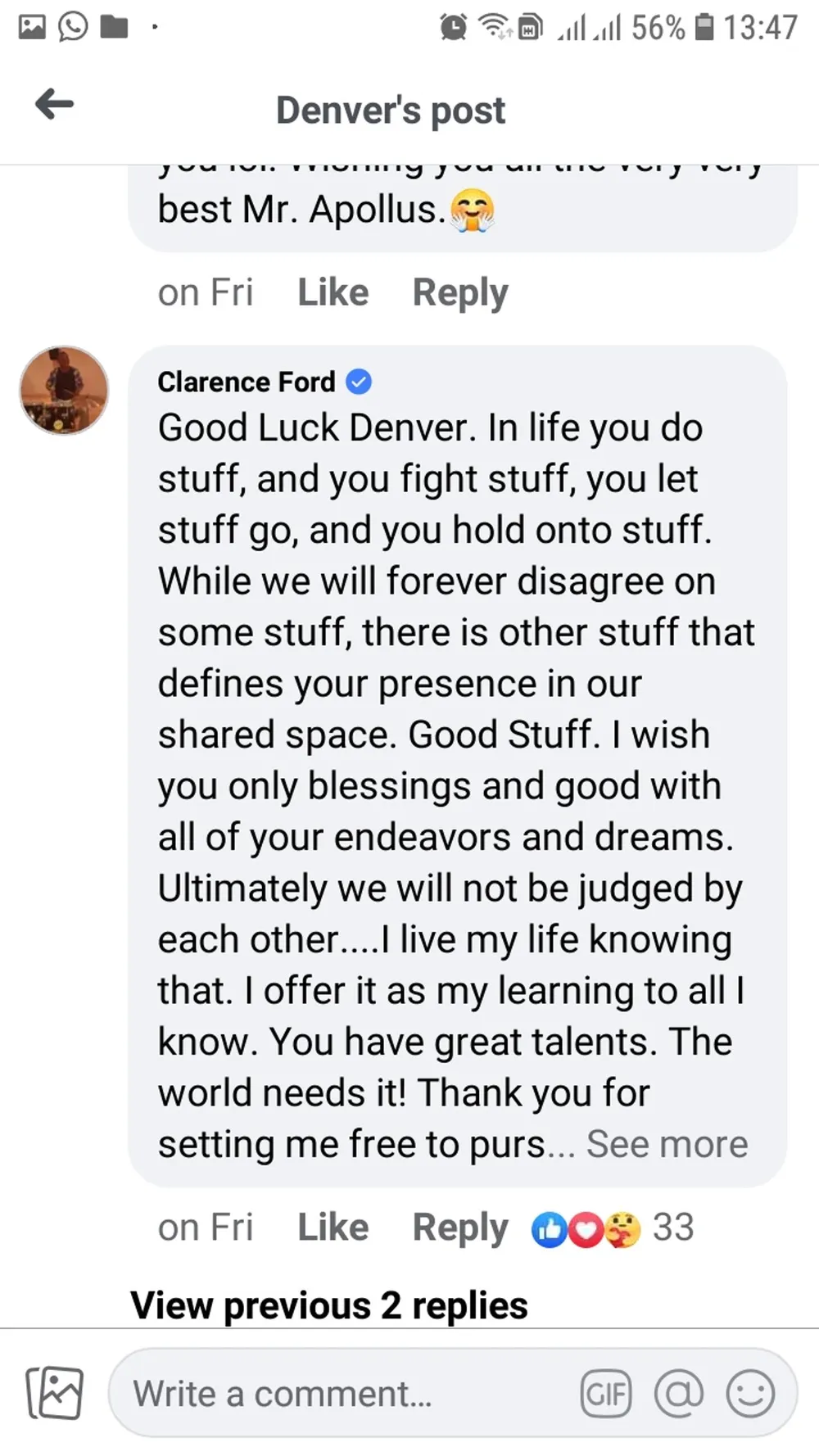 “Good luck Denver. In life you do stuff, and you fight stuff, you let stuff go, and you hold onto stuff,” read the post.
