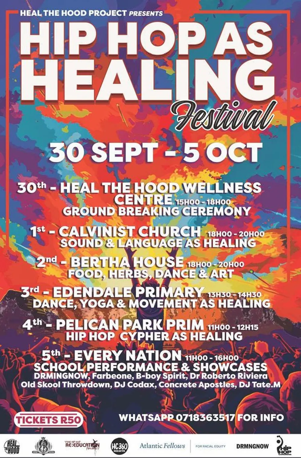 The International Hip Hop as Healing Festival kicked off yesterday and will run up to 7 October, and various events will take place in areas such as Grassy Park, Mowbray, Manenberg, Pelican Park and Retreat.