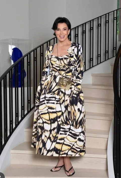 The celebration, held at the upscale restaurant The Ivy in Beverly Hills, showcased Jenner, 69, in a stunning Oscar de la Renta gown, paired with a chic cardigan, a stylish gold purse, and eye-catching open-toed sandals.