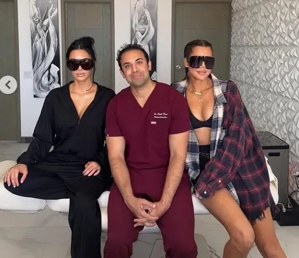 FIXED UP: Kim Kardashian, left, and sister Khloe with Dr Adeel Khan