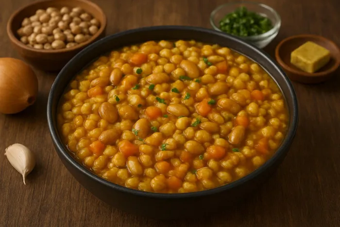 A hearty Eastern Cape one-pot dish of samp and beans simmered with curry and spices.
