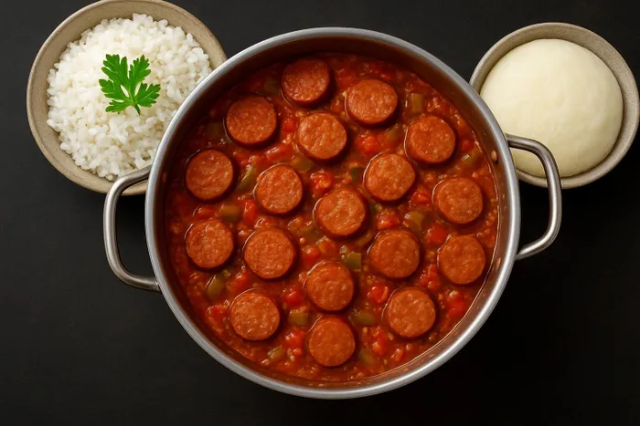 Return the sausages to the pot, add the chakalaka, and stir to combine.
