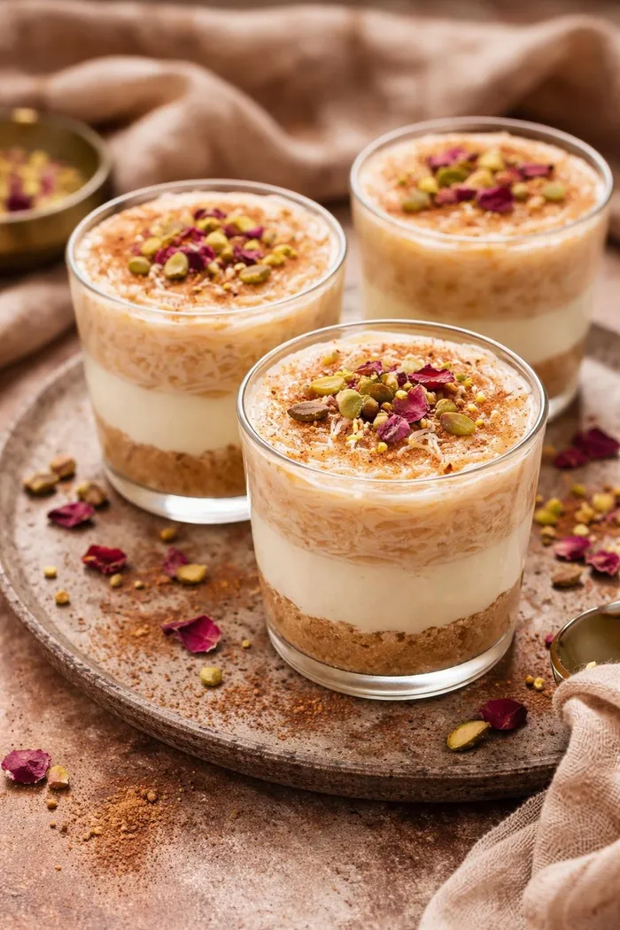 Refrigerate for 2-3 hours to set, and before serving, garnish with optional slivered almonds, a sprinkle of cinnamon, or rose petals.