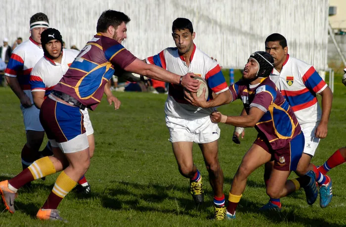 CHARGE: Riyaad Isaacs of Primrose RFC tries to get past Deon Taljaard and Whalied Bailey of Tygerberg in the game. CHARGE: Riyaad Isaacs of Primrose RFC tries to get past Deon Taljaard and Whalied Bailey of Tygerberg in the game.
