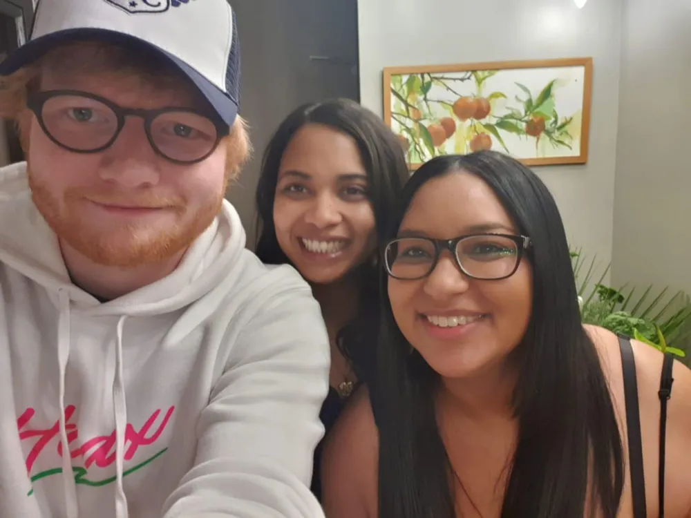 AWKWARD: Michelene Dyers and her friend, Lezahn Jansen bumped into Ed Sheeran at the Test Kitchen Restaurant. Photo: Michelene Dyers.
