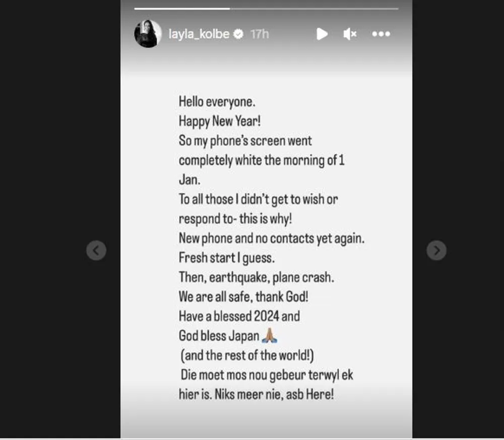 Taking to her Instagram Stories, Layla let her 119,000 followers know they were safe after explaining that her phone screen went blank on January 1, resulting in her losing all her contacts.