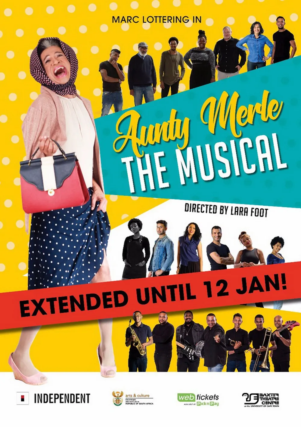 So it’s no surprise that the hit show Aunty Merle the Musical has been extended, now in its third season, at the Baxter Theatre to 12 January.