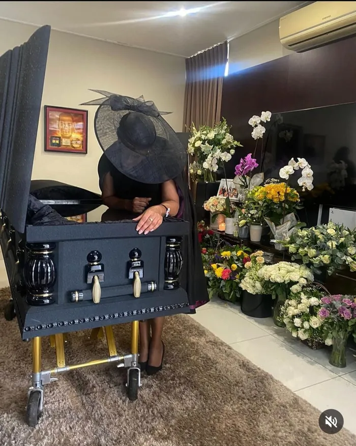 In the image shared on her social media, Lynn Forbes can be seen standing over AKA's casket at his funeral, which took place at the weekend.