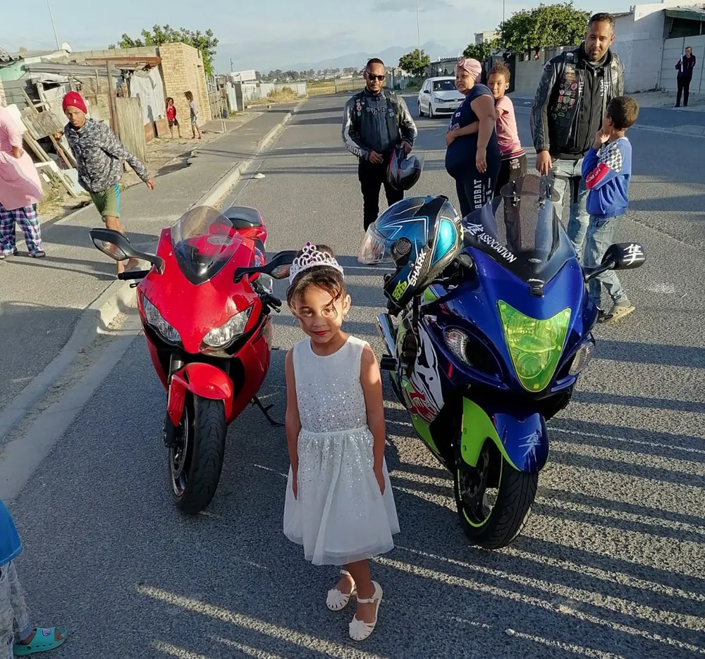Elvene Mackriel’s five-year-old daughter Charlene Mackriel arrived in a larney white Golf escorted by motorbikes.