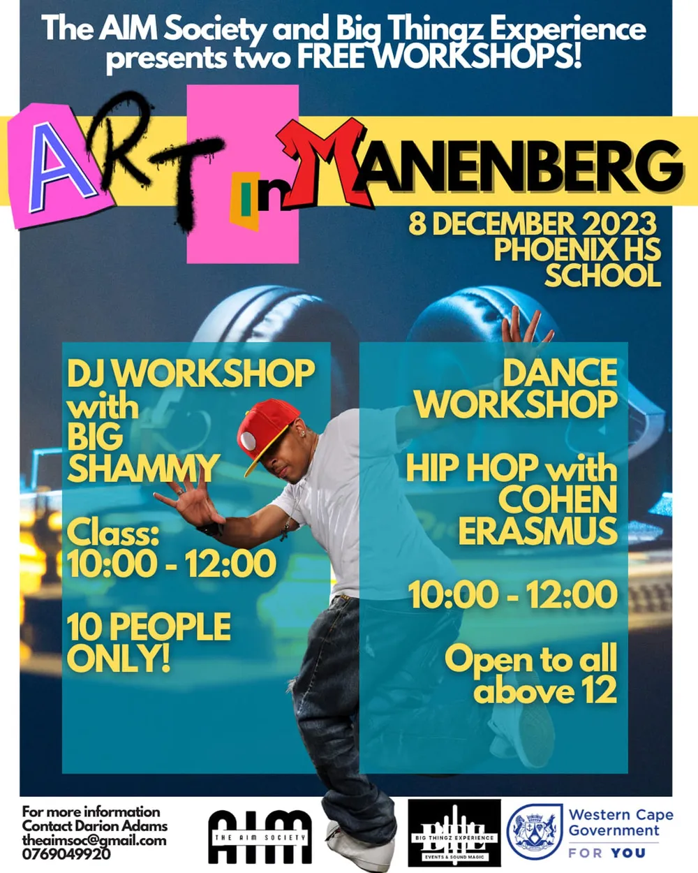 Wednesday’s activities included a DJ Workshop with Big Shammy and a Dance Workshop with Cohen Erasmus at Phoenix High School from 10am to 2pm, entry is free.