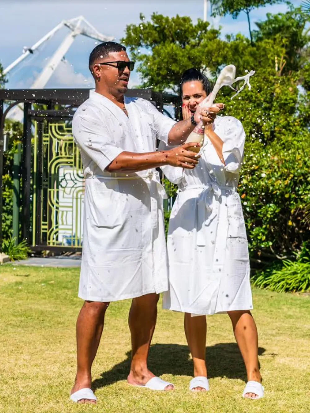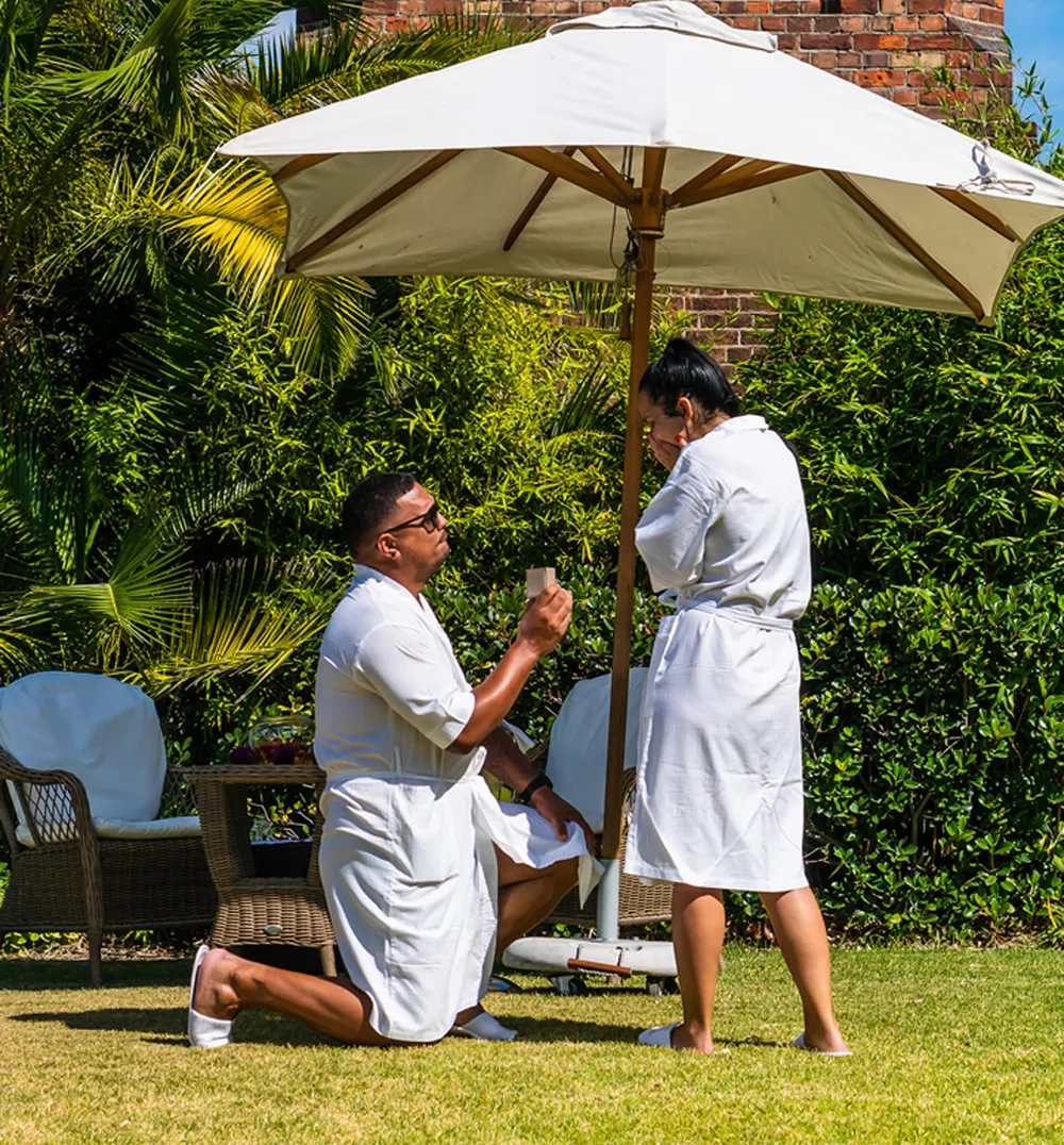“We arrived at the spa, Gaby and I had a massage and then I went out of the room while she enjoyed a facial and I went out to the poolside to prepare for our big moment.”