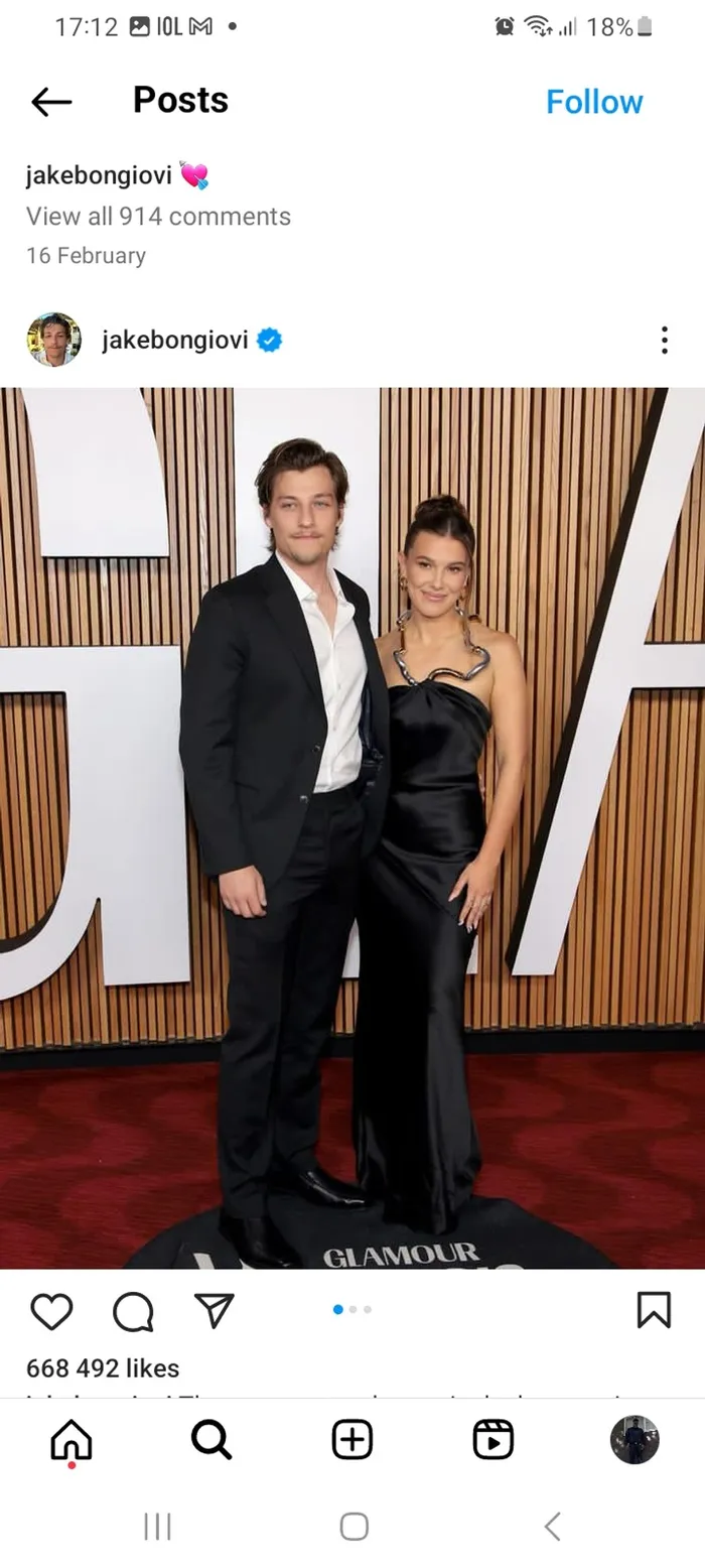 Jon Bon Jovi has spilled the tea that his laaitie Jake Bongiovi married actress Millie Bobby Brown in a “small family wedding”.