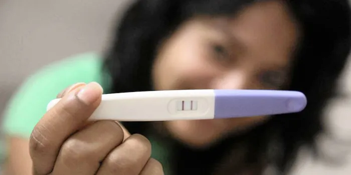 A window in the device shows whether the woman is pregnant, with some showing a blue line to indicate pregnancy and others a pink line.