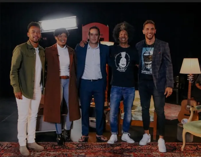 ON SET: Yusuf with guests Chad Saaiman, Chelsea Goliath, Marc Lottering, and Deen Woodman