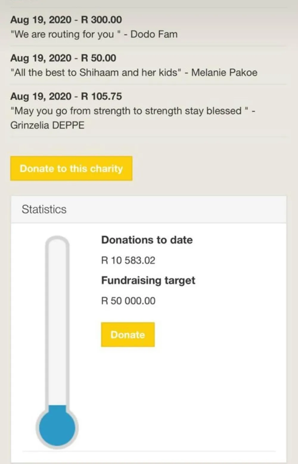 They set a target of R50 000, and in just four days, donations of over R10 000 have already been received.
