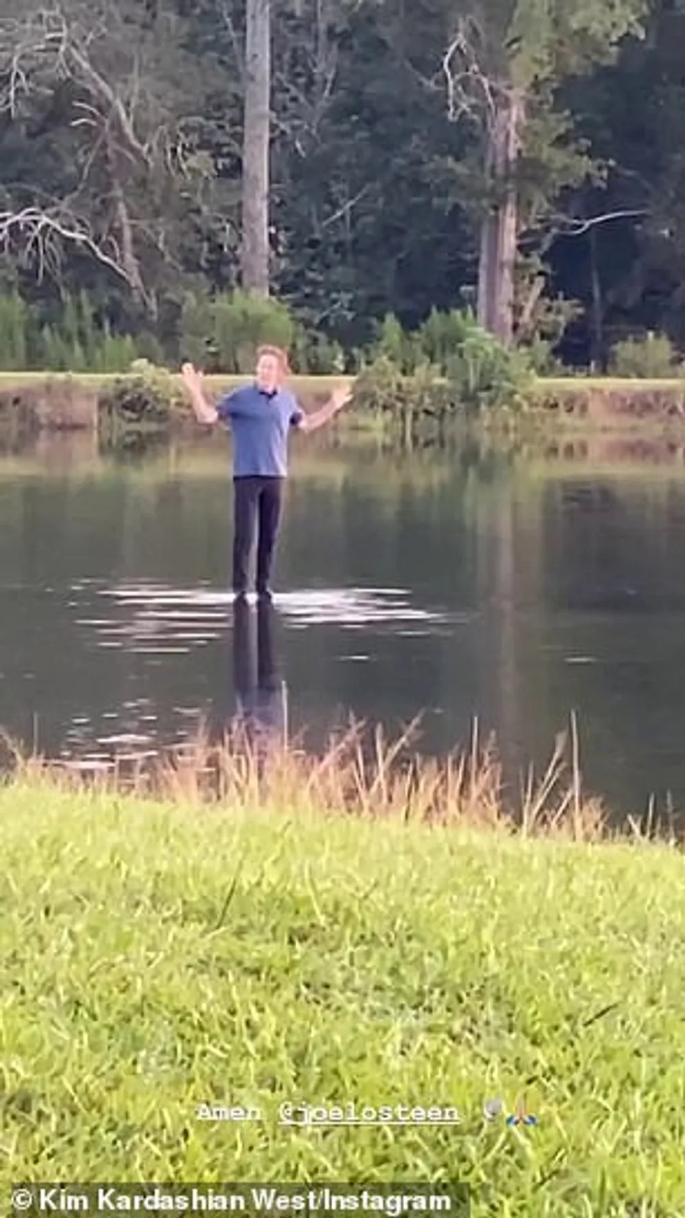 The rapper made a dramatic entrance to his Sunday service in Atlanta at the weekend as he appeared to walk on water.