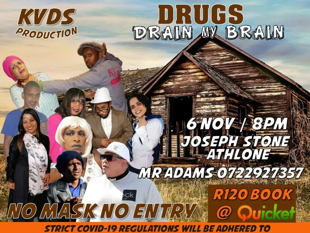The Steven Spielberg of the Cape Flats, Omar Adams, is back with another Kinnes Van Die Ses stage show, called Drugs Drain My Brain.