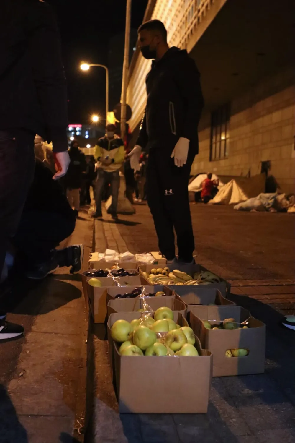 Lace Up served 300 litres of boeber, sandwiches, akhni and fruit to arme mense living in tents, wooden shacks and on the streets.
