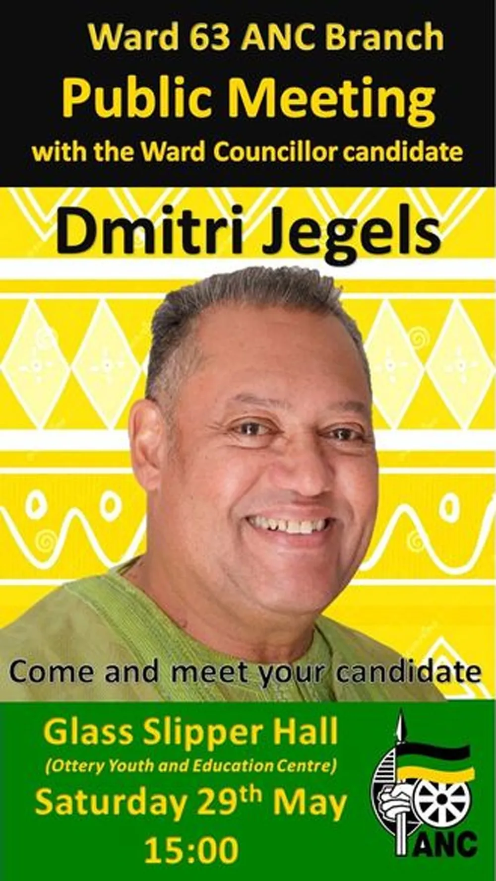 Dmitri was introduced as ward councillor candidate at a special Ward 63 ANC Branch Public Meeting at the Glass Slipper Hall in Ottery on Saturday.