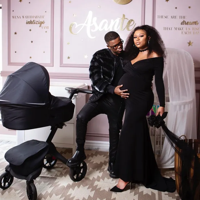 Zinhle and Bongz already have named their baby as well. Taking to Instagram, the Black Motion star shared a stunning picture of the couple in their new baby’s nursery with the name “Asante” written on the wall behind them.