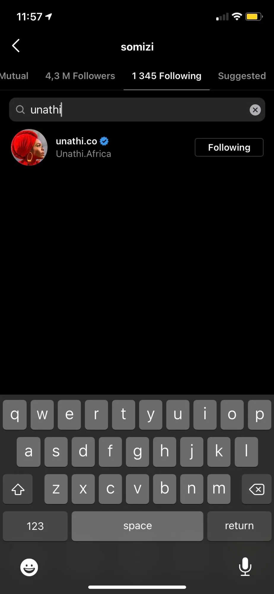 A search by IOL Entertainment found that Unathi is not following Somizi on Instagram any more.