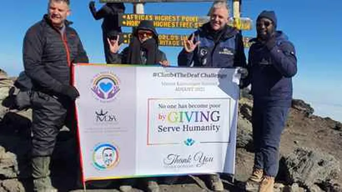 Former Miss Deaf SA Tracy Duncan, a graphic designer from Goodwood, and her fellow climbers conquered the moerse mountain so that laaities can receive the opportunity to hear.